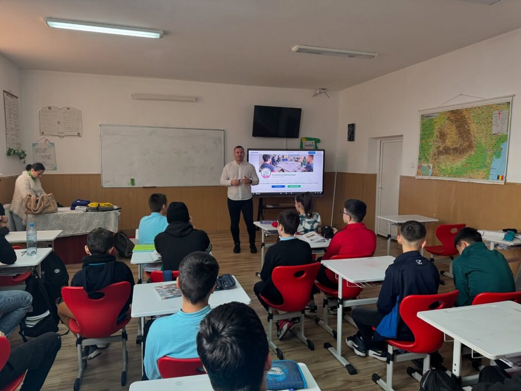 Într-o școală de comună, într-o zi obișnuită, Europa poate părea un concept departe, lipit de manuale, de știri și de discuțiile adulților. Dar în momentul în care intri într-o clasă plină de elevi de a VII-a și a VIII-a și îi vezi cum se întorc spre tine cu întrebări, curiozitate și acel amestec de scepticism și entuziasm tipic vârstei, îți dai seama că Europa nu e „departe” decât dacă o lăsăm acolo. Când o aduci în fața lor, pe limba lor, devine ceva personal: o discuție despre decizii, despre șanse și despre felul în care viitorul începe să se construiască exact în perioada asta a vieții.