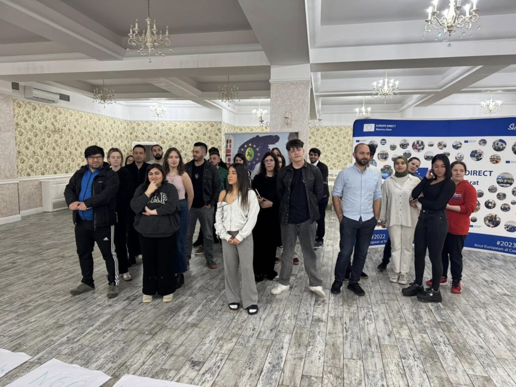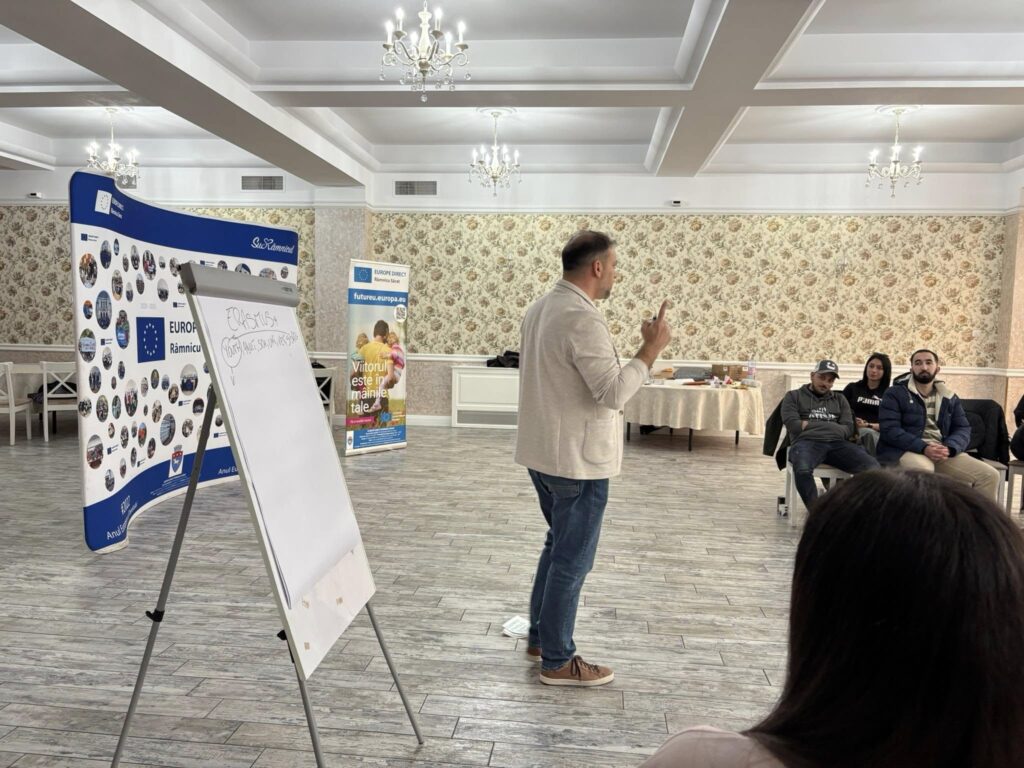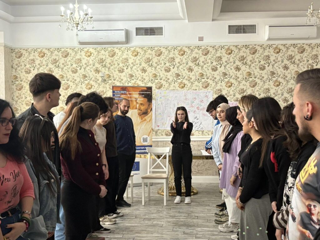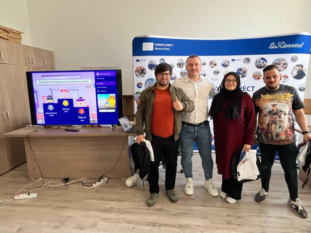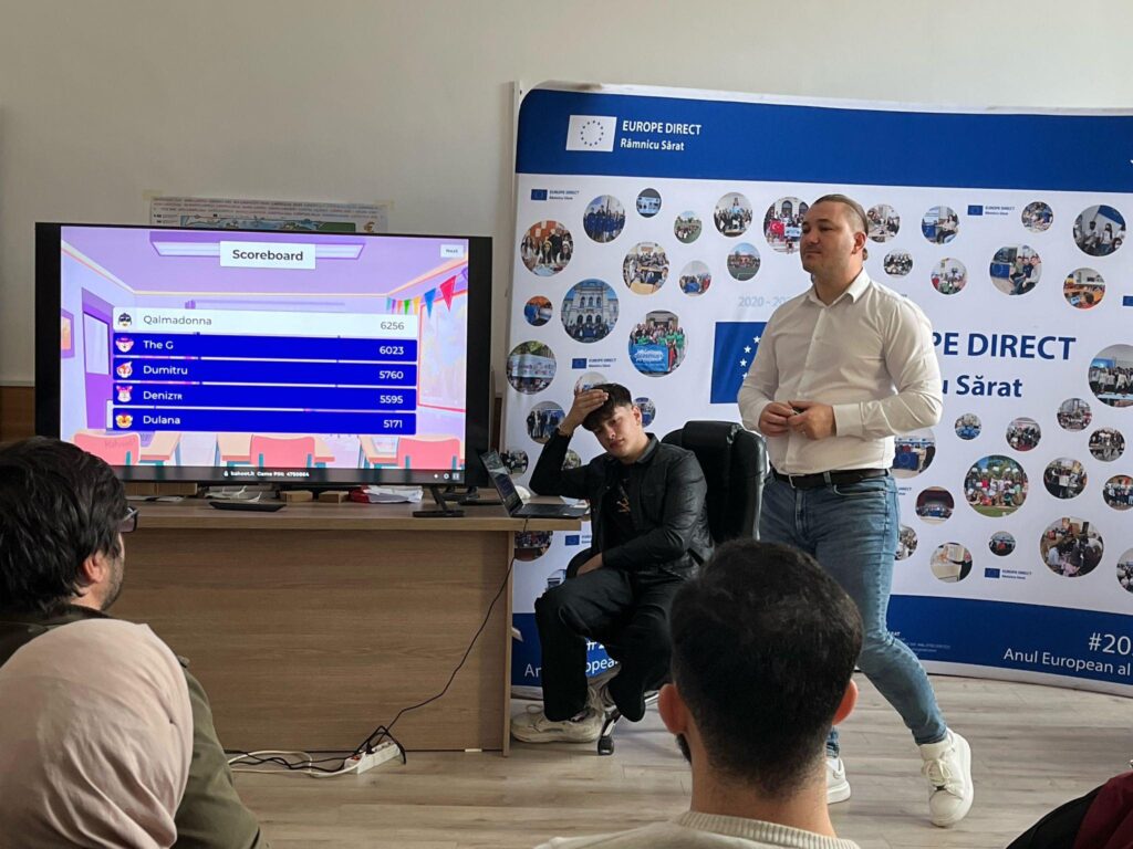 Unul dintre momentele care au prins imediat ritm și au făcut „Europa” să pară mai aproape a fost componenta de învățare despre Uniunea Europeană și despre provocările actuale. Nu a fost doar un bloc de informații, ci o combinație între context, curiozitate și exercițiu: provocările Europei în 2025, impactul digitalizării, egalitatea de gen, istoria UE și importanța instituțiilor europene, principiile și valorile comune, toate au fost așezate într-o formă care a invitat la conversație, nu la memorare. Iar când participanții și-au testat cunoștințele prin EUKahoot și au primit premii, s-a simțit clar că învățarea poate fi și serioasă, și vie, și motivantă în același timp.