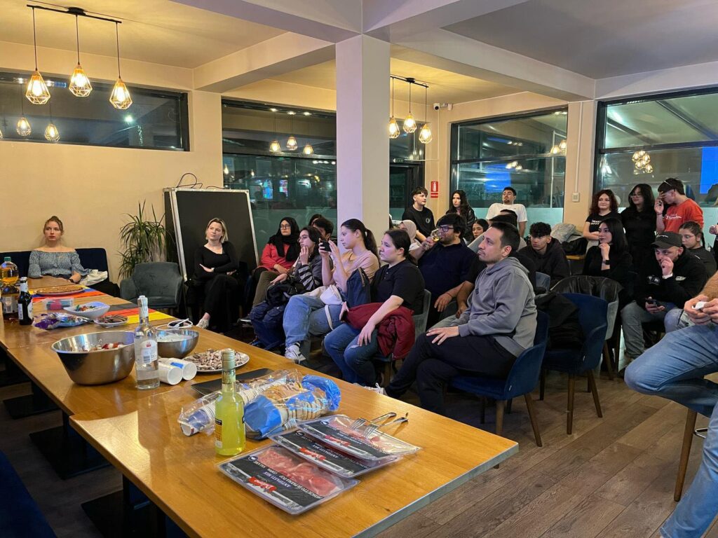 În paralel cu sesiunile de lucru, s-a construit și „țesătura” interculturală, acea parte fără de care multe proiecte Erasmus+ ar rămâne incomplete. Seriile culturale au fost momente în care informația s-a amestecat cu emoția, iar distanța dintre țări s-a micșorat prin lucruri simple: tradiții, povești, gusturi, dansuri. Într-una dintre seri, Turcia și Malta au fost cele care au prezentat elemente din cultura lor, iar grupul nu doar a ascultat, ci a „gustat” și a încercat împreună dansuri tradiționale. Genul acesta de seară nu este doar divertisment: e o lecție de respect, de curiozitate și de felul în care poți învăța fără să transformi diferența în barieră.