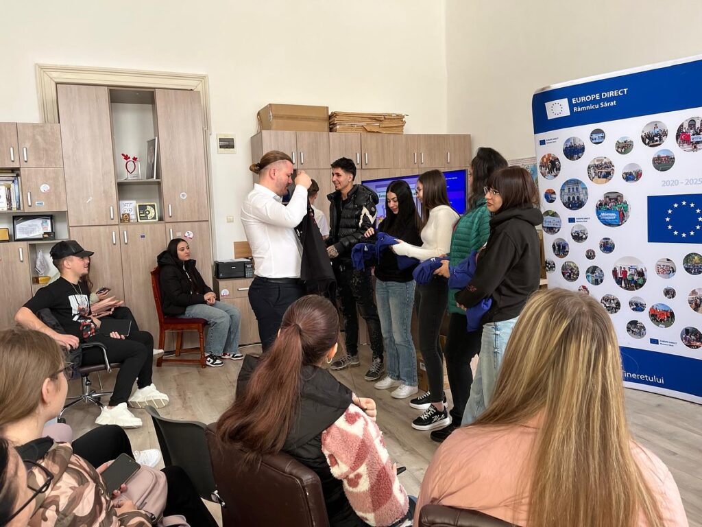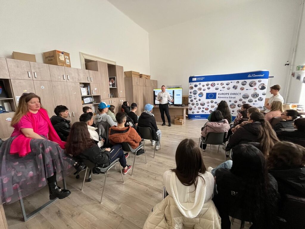 Pentru prima dată în centrul Europe Direct Râmnicu Sărat, liceenii au luat contact cu contextul existenței centrului, cu temele pe care acesta și le propune pentru anul 2025 și cu oportunitățile de implicare pe care centrul și Uniunea Europeană le oferă tinerilor. Discuția a fost construită ca o punte între informația corectă și realitatea de zi cu zi a adolescenților: ce așteptări au, ce nevoi simt, ce îi preocupă și cum pot transforma curiozitatea în acțiune. Dincolo de date și concepte, mesajul central a fost că tinerii nu sunt doar beneficiari ai politicilor europene, ci pot fi și parteneri activi în comunitate, atunci când înțeleg mecanismele, valorile și instrumentele pe care le au la dispoziție.