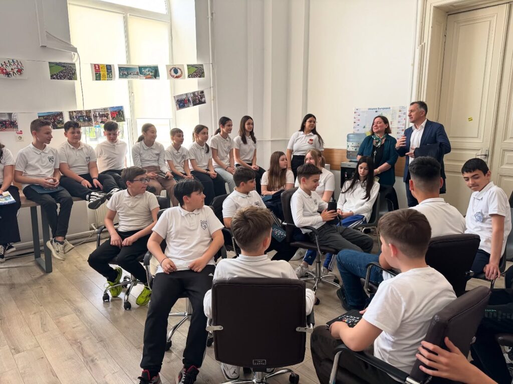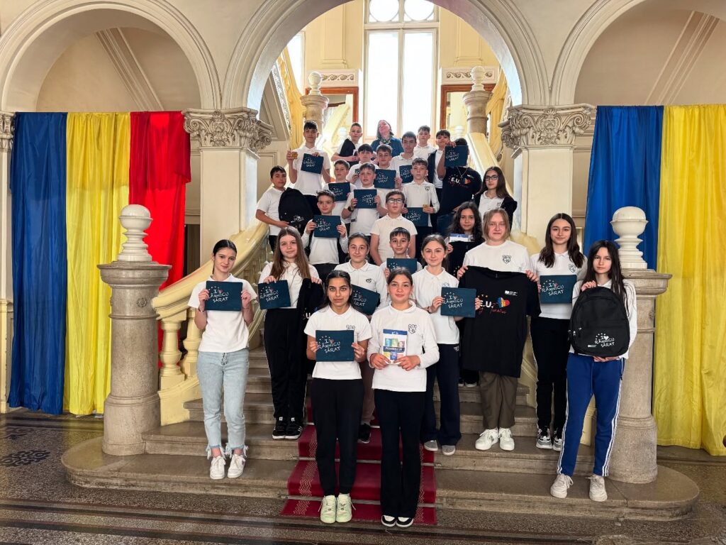 Pentru a face totul mai ușor de urmărit, am explicat și rolul principalelor instituții europene, într-un limbaj adaptat vârstei lor. Am vorbit despre Comisia Europeană și despre Parlamentul European, despre modul în care se construiesc politici și programe și despre faptul că există oameni aleși și oameni desemnați să lucreze la reguli comune care pot influența direct viața cetățenilor. Elevii au descoperit că deciziile luate la nivel european nu sunt „departe” de noi, ci se reflectă în proiecte educaționale, în inițiative de protecție a mediului, în programe pentru tineri și în oportunități pe care le pot accesa, pe măsură ce cresc.