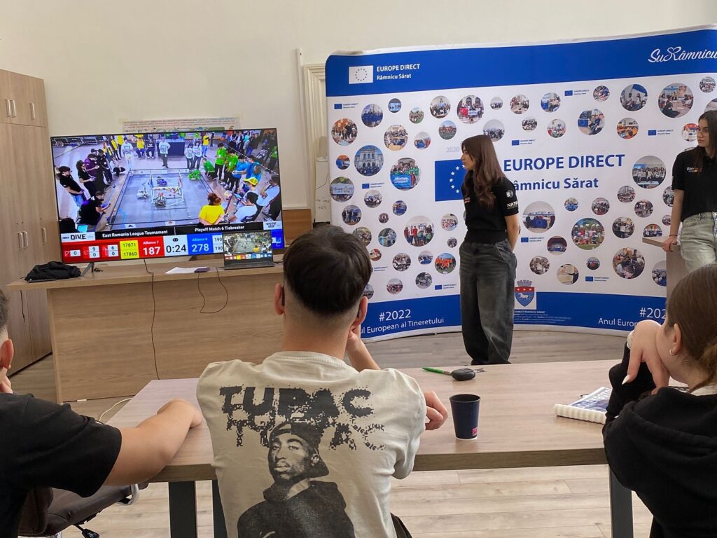 Cadrul întâlnirii a fost completat de componenta educațională europeană, specifică misiunii EUROPE DIRECT. În discuții, s-a făcut legătura dintre competențele cultivate prin robotică și direcțiile pe care Europa le susține pentru tineri: dezvoltarea competențelor digitale, gândirea critică, creativitatea, inovarea și participarea activă în comunitate. Participanții au putut explora și materiale informative despre Uniunea Europeană, despre valorile sale și despre modul în care educația și accesul la informații de calitate pot schimba perspective și pot deschide oportunități. Într-un colț dedicat resurselor, au fost prezentate broșuri și ghiduri care îi ajută pe tineri să înțeleagă mai bine cum funcționează UE și de ce este important ca fiecare generație să fie informată și implicată.