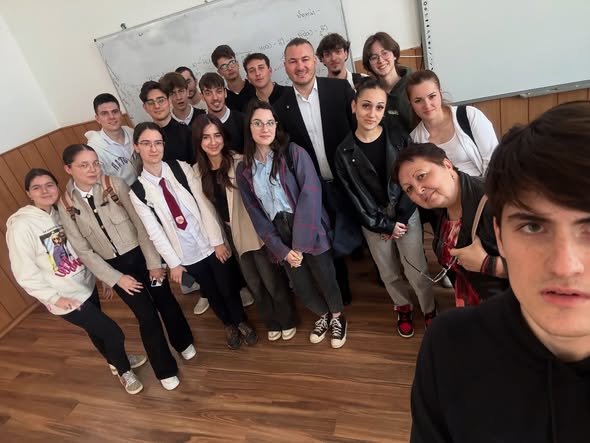 Astăzi, „Despre Europa” a fost, înainte de orice, un prilej de întâlnire. Cu elevii clasei a XI-a din CNAV, cu un invitat în fața clasei, cu o profesoară care a deschis ușa pentru dialog și cu o fotografie de grup care spune, fără cuvinte mari, că a existat o conexiune. Iar dacă un astfel de moment lasă în urmă măcar o întrebare pe care un elev o va purta cu el mai departe, atunci discuția „Despre Europa” și-a atins, în felul ei, scopul: să ne facă mai atenți, mai implicați și mai curajoși în a înțelege lumea în care trăim.