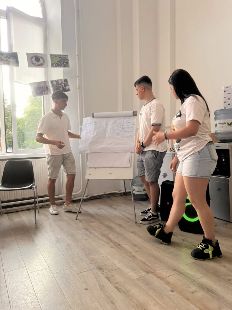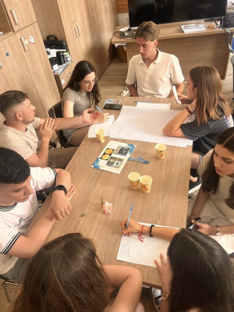 Un punct important al workshopului a fost legat de modul în care ne putem asigura că primim informații corecte. Am vorbit despre cum recunoaștem sursele credibile, despre diferența dintre o opinie și un fapt și despre cât de ușor poate fi manipulată percepția atunci când ne bazăm doar pe titluri sau pe mesaje scoase din context. Fără să fie o lecție rigidă, discuția a fost una vie, în care tinerii au contribuit cu exemple, întâmplări și observații personale, iar asta a făcut ca totul să devină real și aplicabil.