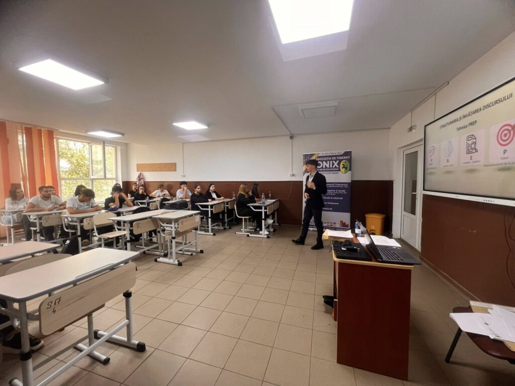 Sub îndrumarea energică a facilitatorului Ionuț Dumitrașcu, atelierul a fost o incursiune fascinantă în mecanismele psihologice și tehnice ale oratoriei. Participanții au descoperit metoda PREP (Point, Reason, Example, Point) – o formulă esențială pentru structurarea unor discursuri clare, logice și, mai ales, convingătoare. Dincolo de structură, tinerii au explorat „geografia” propriei frici, înțelegând ce se întâmplă în mintea lor atunci când sunt pe scenă și cum pot gestiona adrenalina pentru a o transforma dintr-un obstacol într-o resursă de entuziasm și prezență scenică.