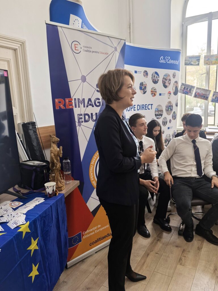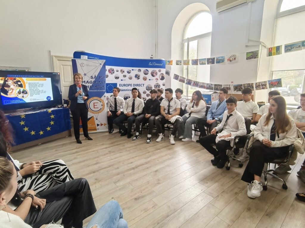 Centrul EUROPE DIRECT Râmnicu Sărat și Sala mare de ședințe a Consiliului Local au devenit astăzi veritabile spații de învățare pentru elevii Liceului Teoretic „Ștefan cel Mare”. Sub egida proiectului Erasmus+ „Reimagine Education”, tinerii coordonați de Consiliul Școlar al Elevilor, în parteneriat cu Organizația Coaliția pentru Educație, au lucrat timp de trei ore la definirea unui model de școală mai prietenoasă și mai adaptată secolului XXI. Această inițiativă pune accent pe capacitatea elevilor de a identifica probleme și de a propune măsuri practice pentru a transforma instituția de învățământ într-un loc unde să vină cu drag.