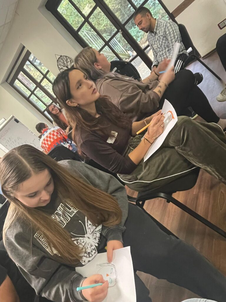 În context internațional, diferențele nu sunt doar detalii: pot fi surse de neînțelegeri, dar și resurse extraordinare, dacă sunt gestionate cu deschidere. În prima zi am vorbit, direct și aplicat, despre importanța comunicării eficiente și despre modul în care feedback-ul constructiv poate schimba atmosfera unui grup. Nu este ușor să dai feedback fără să rănești și nu este ușor să primești feedback fără să te aperi. În munca de tineret, însă, aceste două abilități sunt fundamentale, fiindcă ele creează un climat în care oamenii se simt văzuți și respectați. În aceleași activități am ajuns natural și la empatie: nu ca noțiune frumoasă, „de manual”, ci ca practică zilnică. Empatia reală presupune să ieși din propriul scenariu și să accepți că celălalt poate trăi aceeași situație într-un mod complet diferit, iar acel mod este valid. Într-un grup internațional, empatia se vede inclusiv în gesturi mici: să îi dai timp cuiva să își găsească cuvintele într-o limbă străină, să întrebi fără să ironizezi, să lași loc de tăcere când e nevoie și să nu grăbești concluziile.