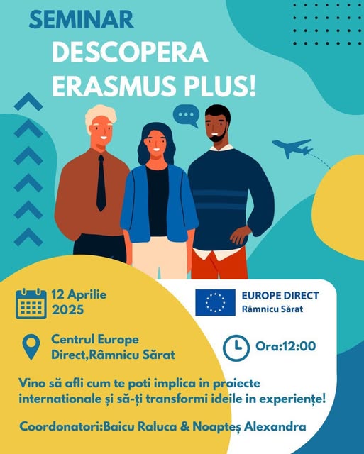 Descoperă Erasmus+ la Europe Direct Râmnicu Sărat: seminar pe 12 aprilie 2025